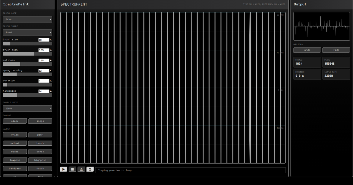 Paint directly in a spectrogram and export the result as sound